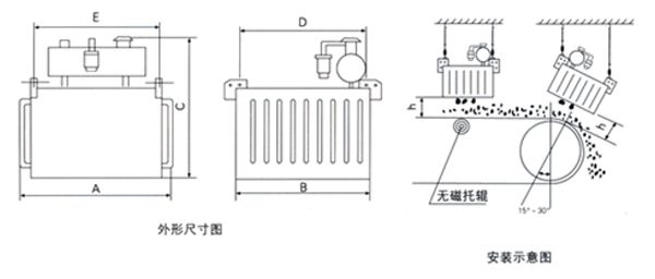 其主要性能指標(biāo)均達(dá)到或高于JB/T7689-2004標(biāo)準(zhǔn)要求,該產(chǎn)品可除去混雜在非磁性物料中0.1~35公斤的鐵磁性物質(zhì)。